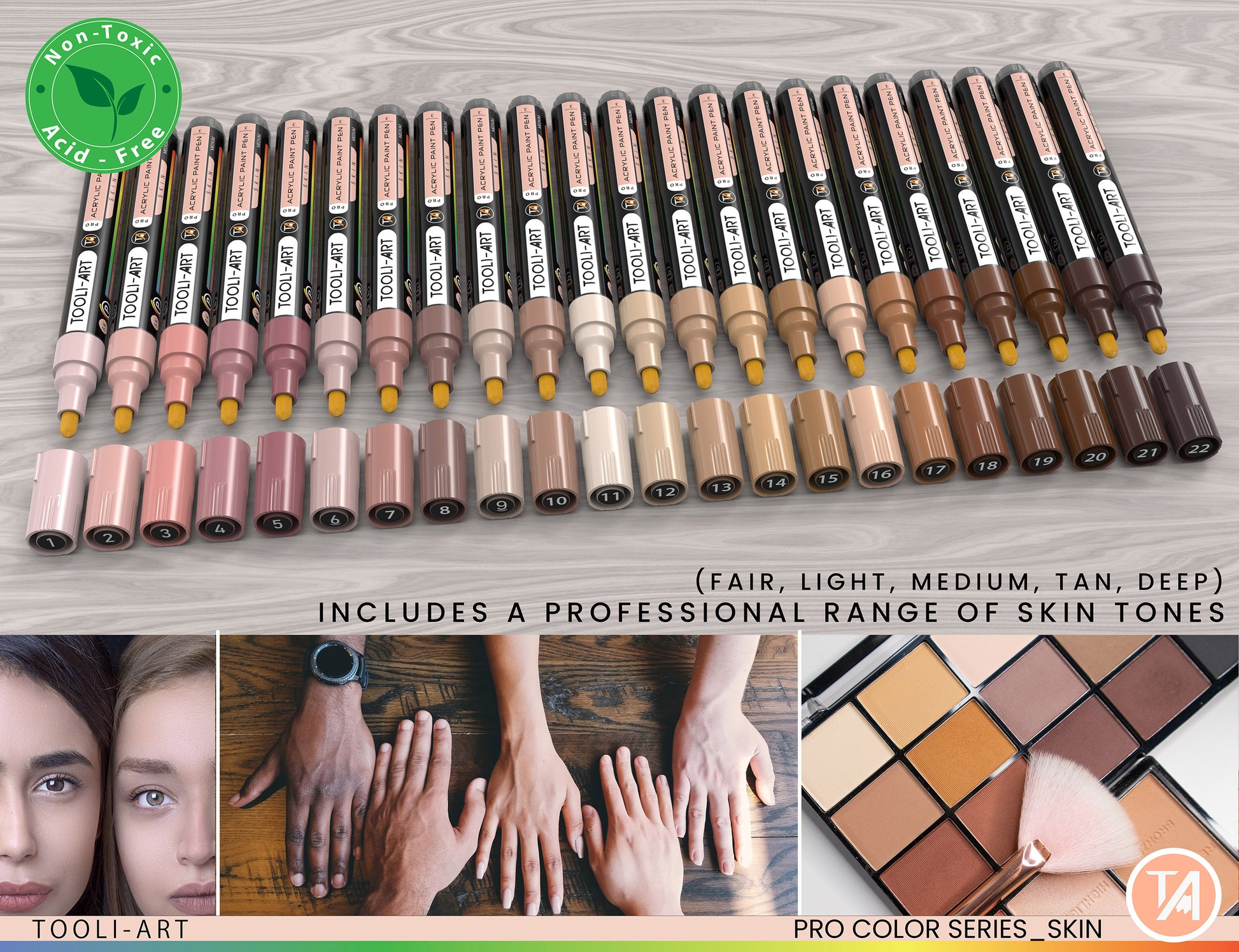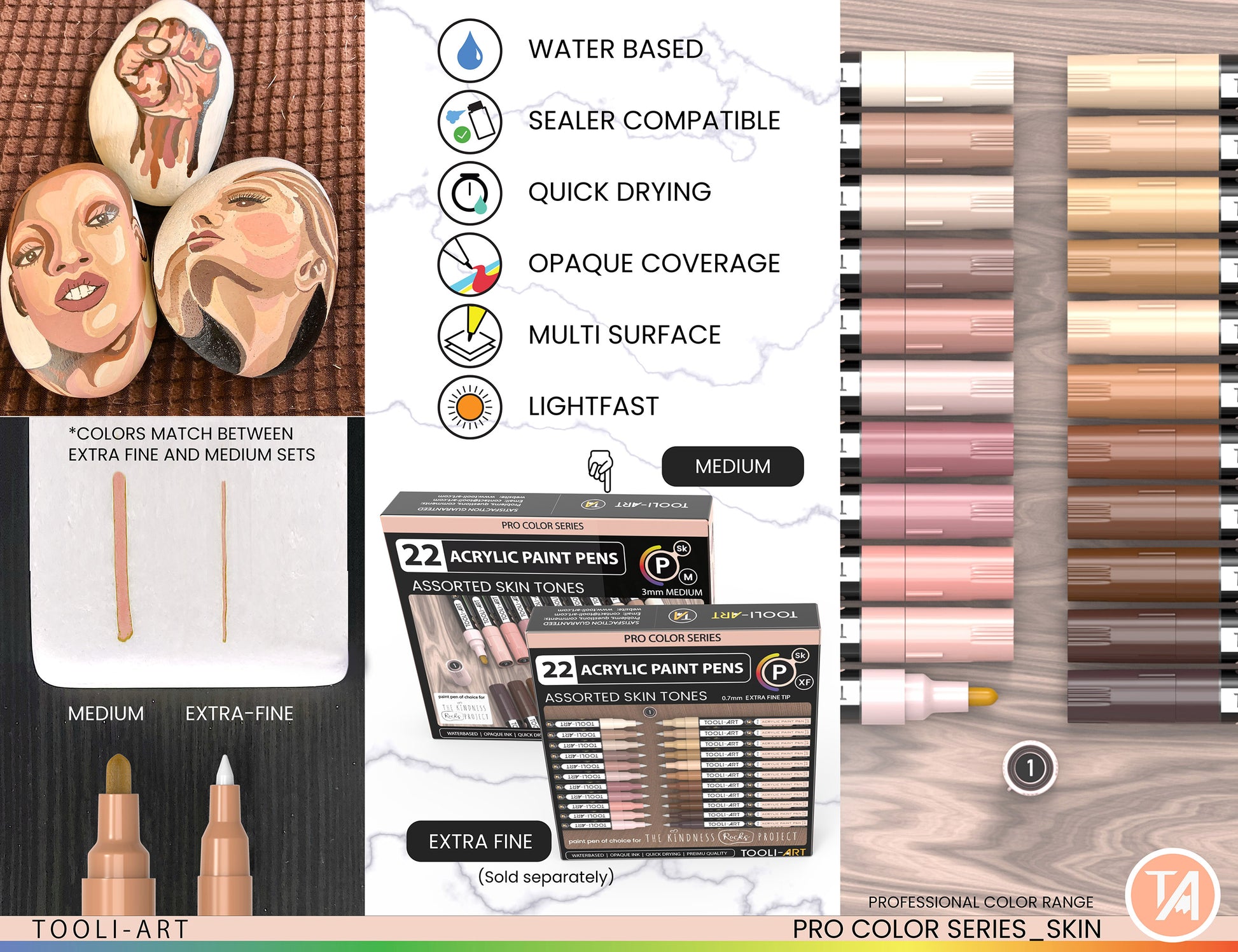 22 Acrylic Paint Pens (SKIN FLESH) Pro Color Series Set (3mm MEDIUM)