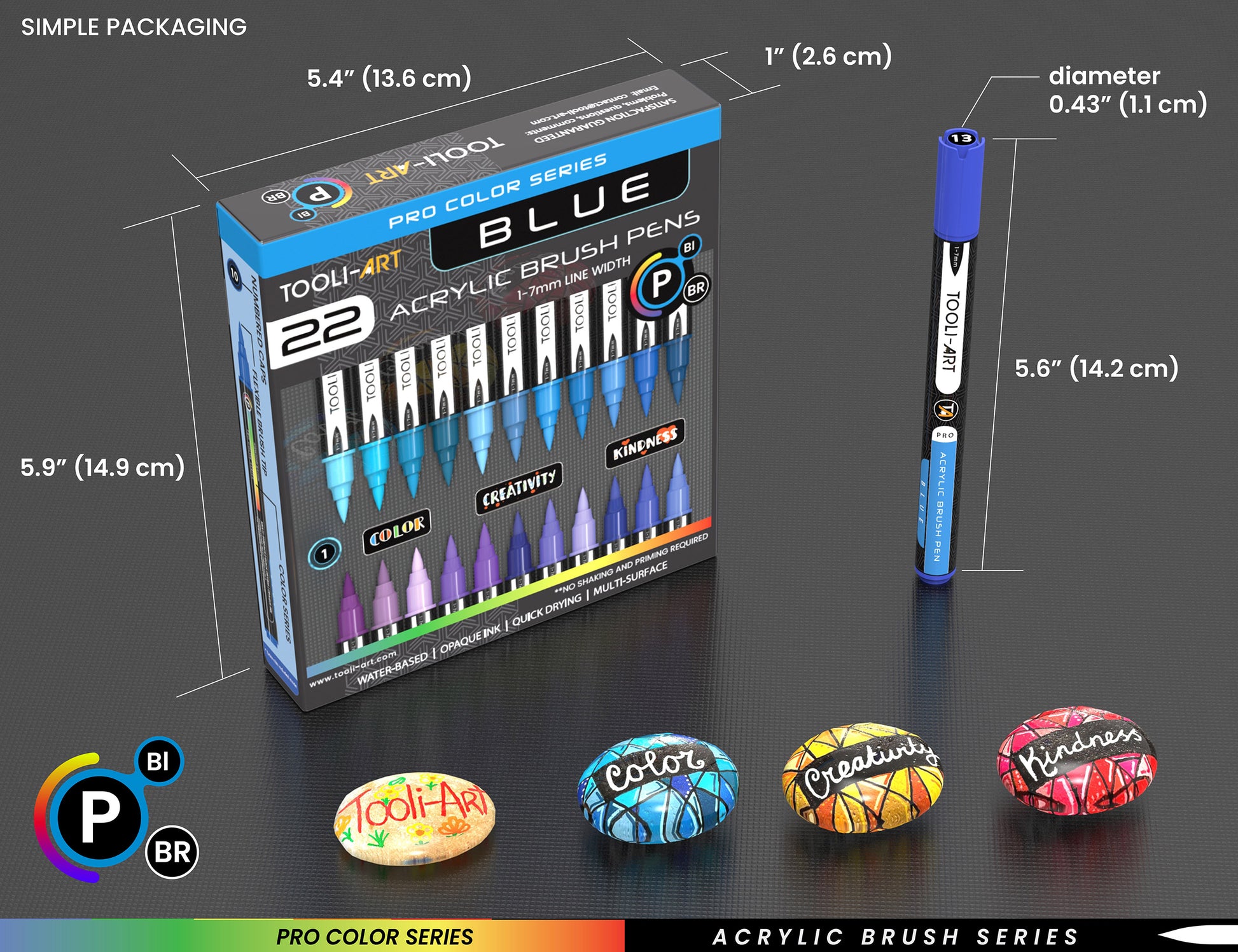 22 Flexible Brush Tip Acrylic Paint Pens Markers Set 1-7mm (BLUE)