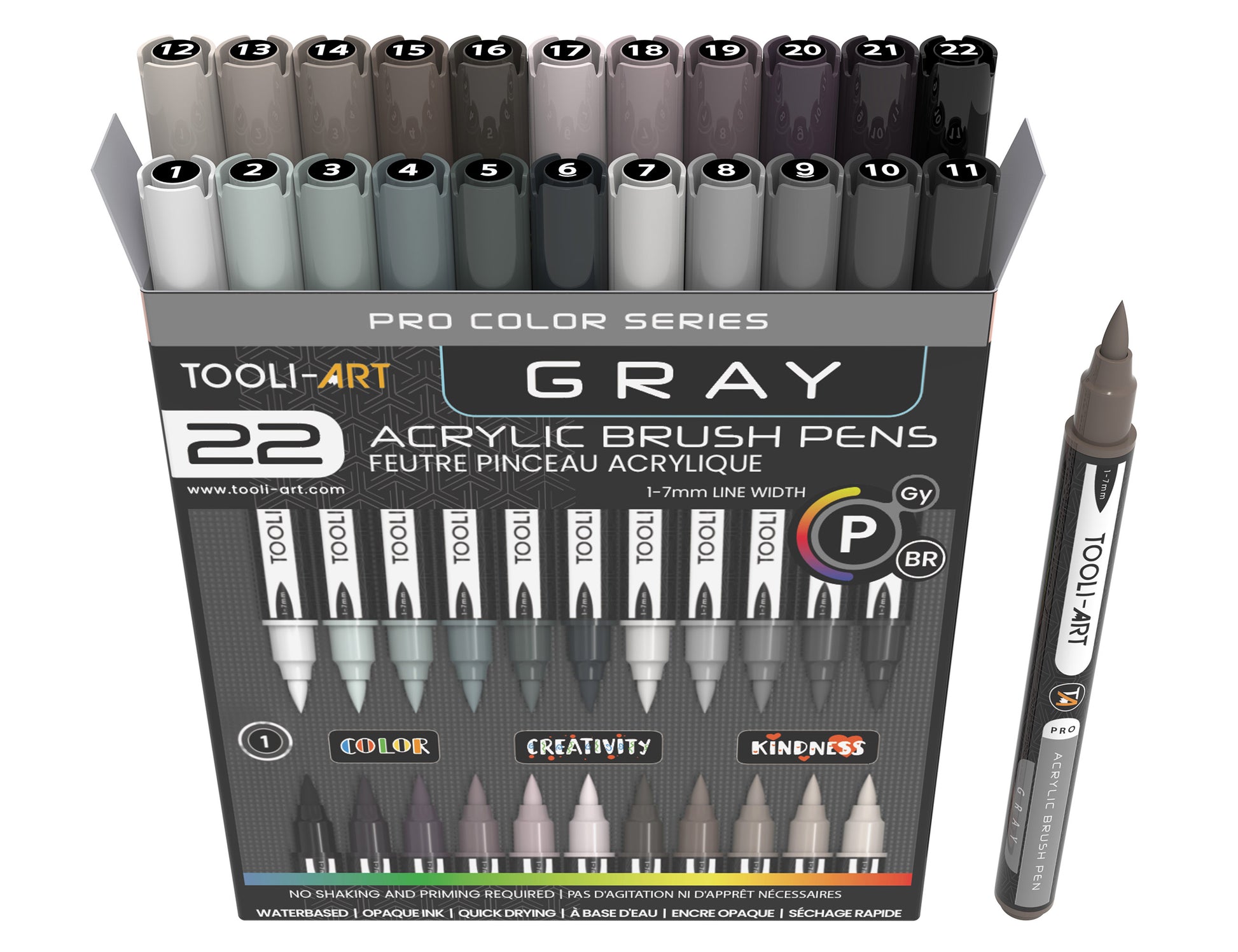 22 Flexible Brush Tip Acrylic Paint Pens Markers Set 1-7mm (GRAY)