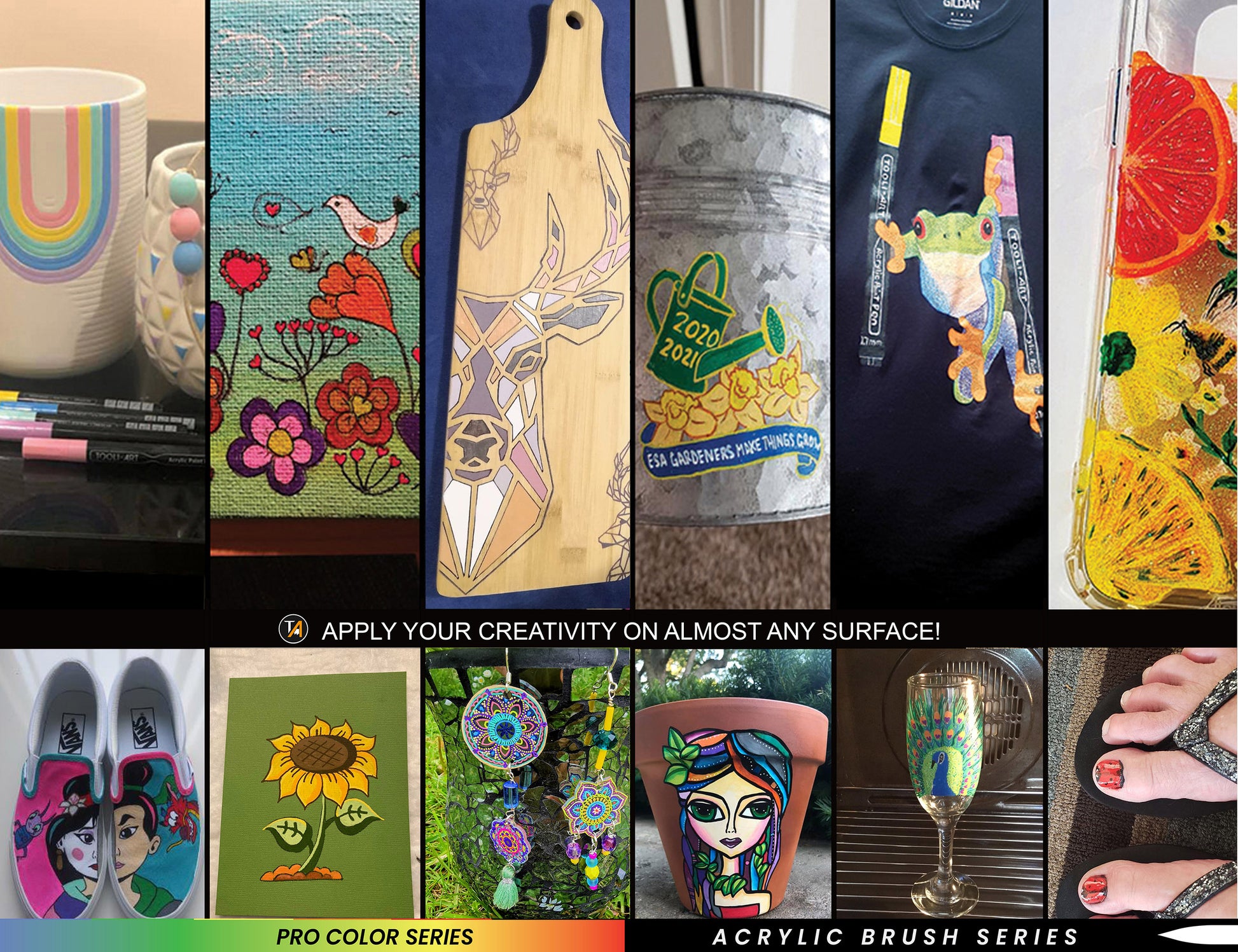 ✅SUPERB QUALITY – The highly pigmented ink gives you a fantastic opaque coverage. The fade-resistant ink dries quickly and works great on dark and light surfaces. The multi-surface paint works on most surfaces including stone, glass, wood, metal, fabric, porcelain, canvas, plastic, paper, cardboard, pottery, shoes, shirts, etc. and is perfect for any DIY project, brush lettering, calligraphy, rock painting, and more!