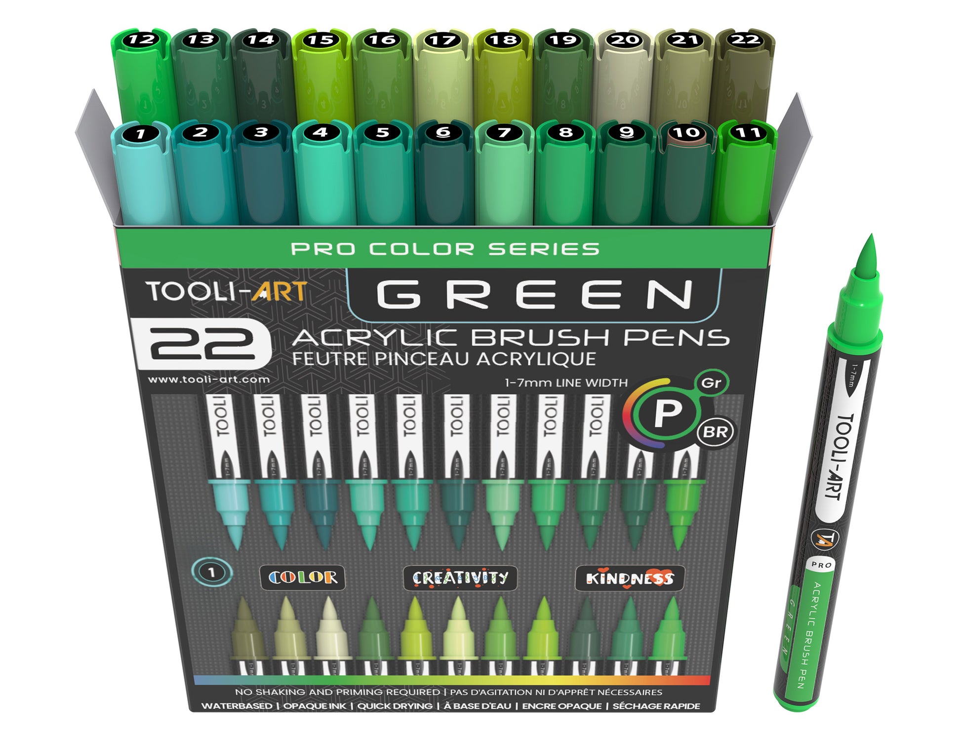 22 Flexible Brush Tip Acrylic Paint Pens Markers Set 1-7mm (GREEN)