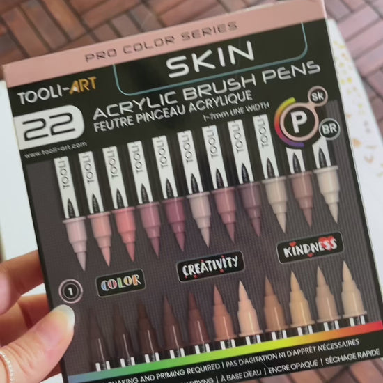 22 Flexible Brush Tip Acrylic Paint Pens Markers Set 1-7mm (SKIN)