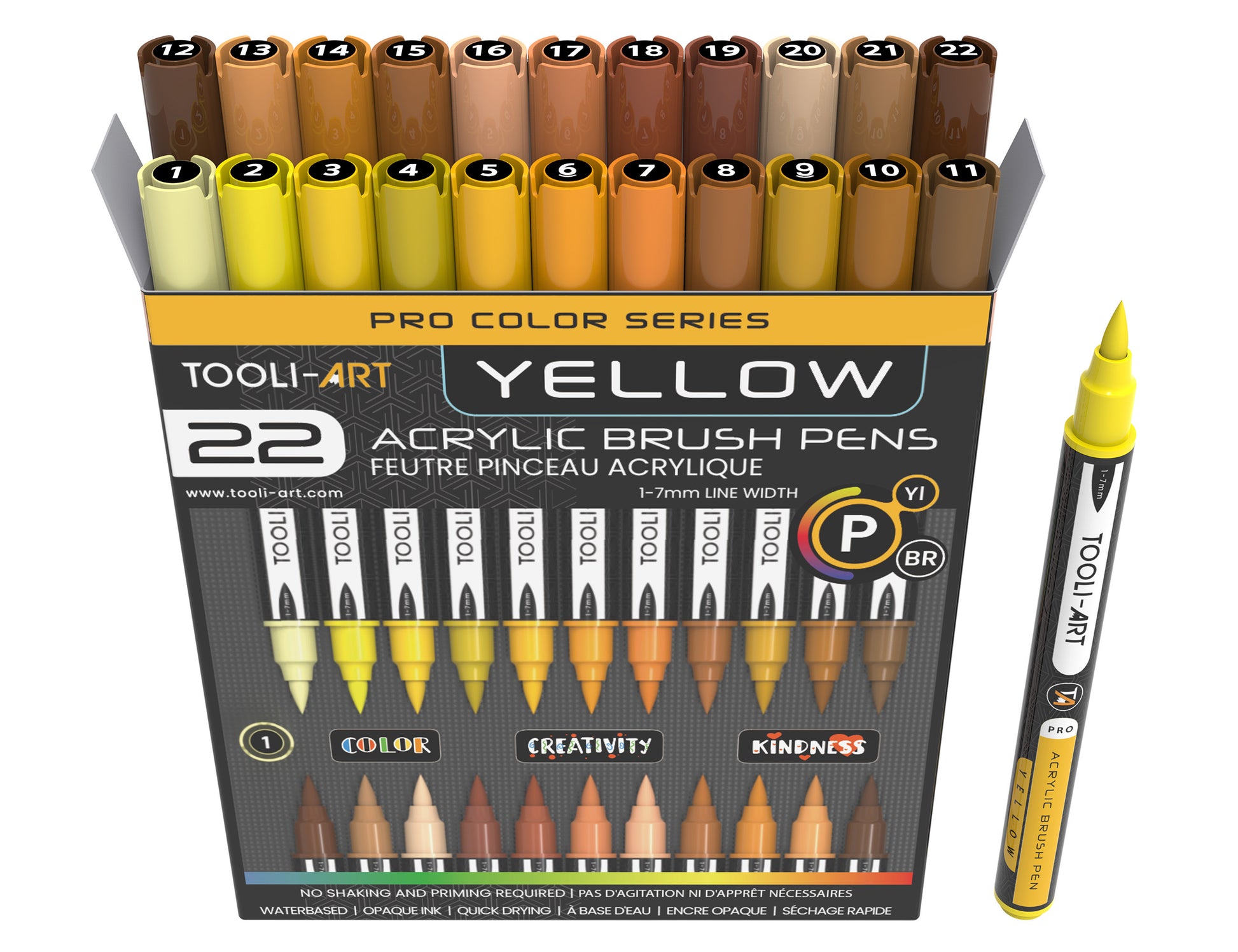 22 Flexible Brush Tip Acrylic Paint Pens Markers Set 1-7mm (YELLOW)
