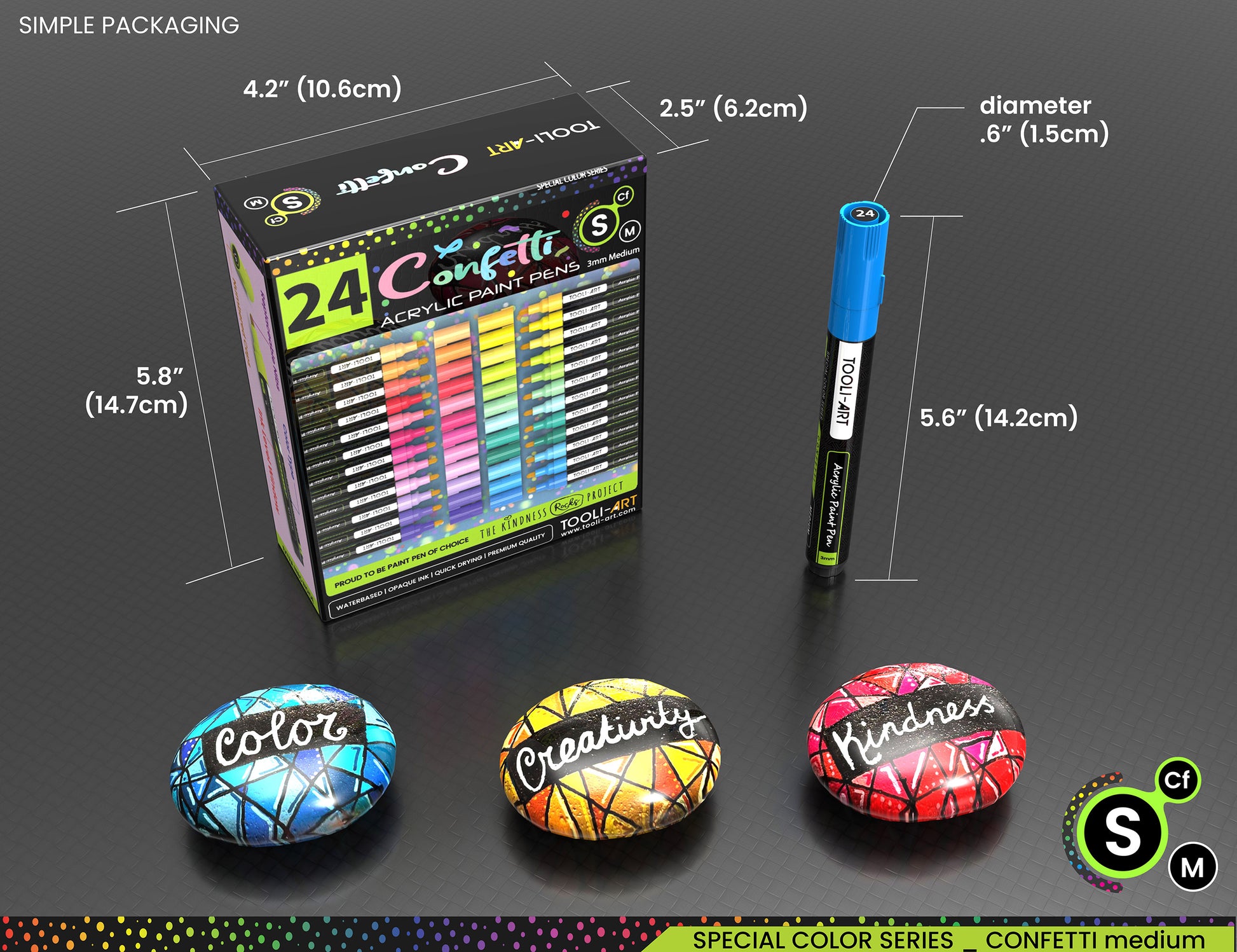 24 Confetti Colors Acrylic Paint Pens Markers Set 3mm Medium Tip