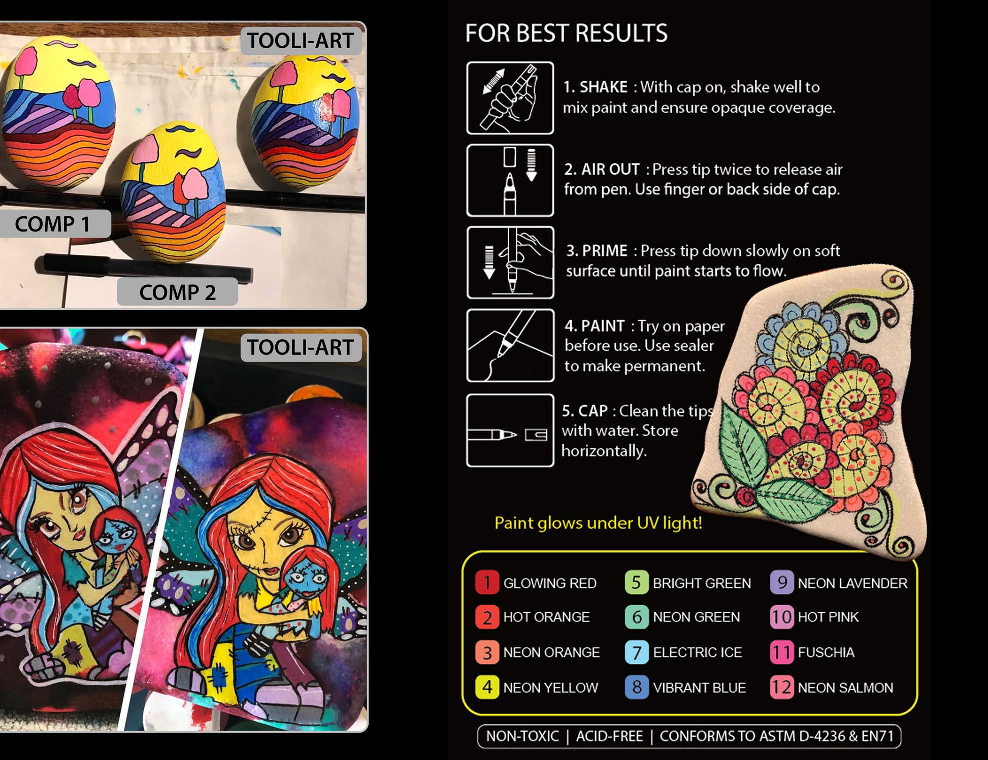 TOOLI-ART 24 Neon Fluorescent Acrylic Paint Pens Marker Set (0.7mm EXTRA FINE + 3.0mm MEDIUM)