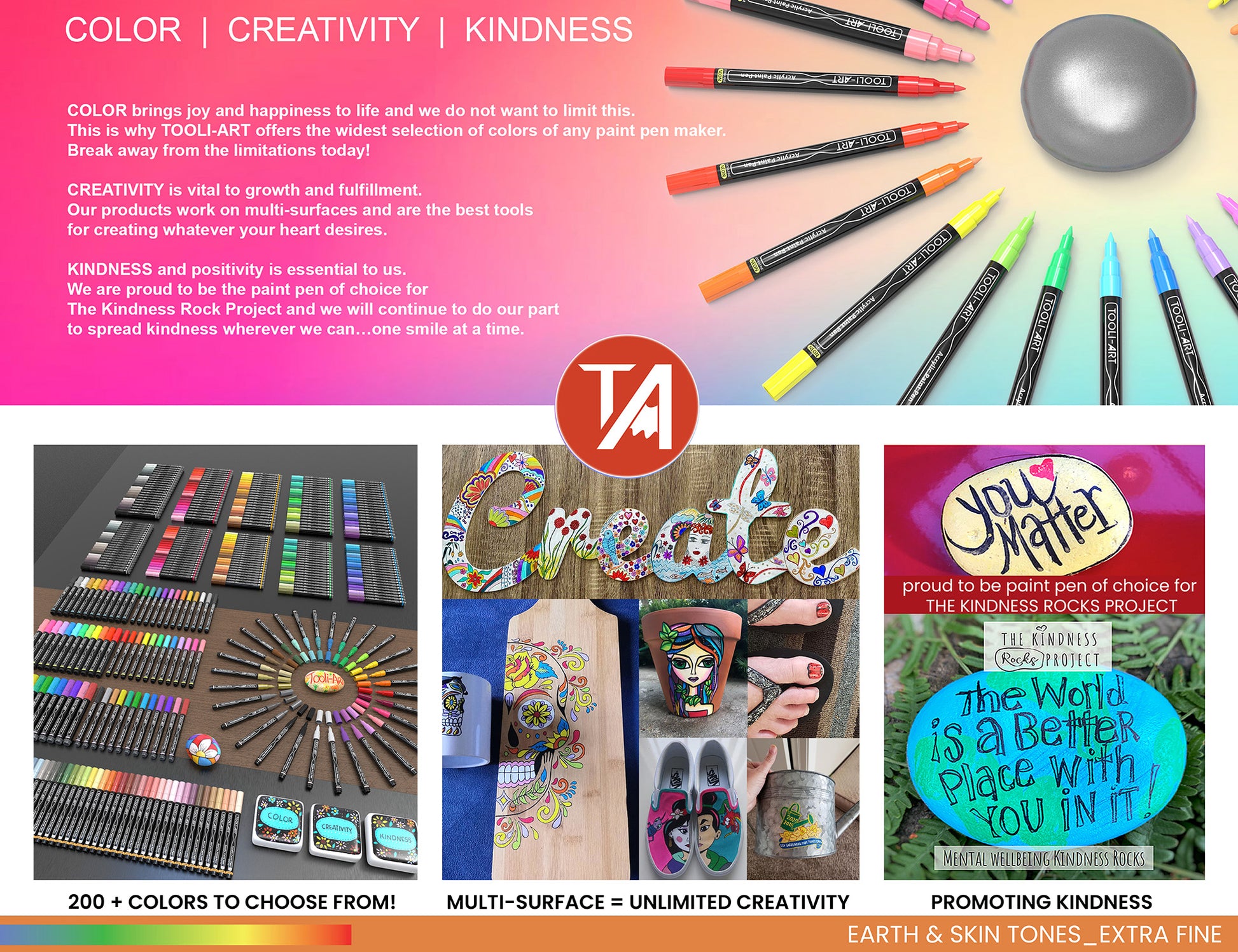 Tooli-Art paint pens are ideal for use on rocks, crafts, mugs, canvases, pottery, photos, or almost any surface you’d like to decorate your personal art on. This set is ideal for painting subject matter such as animals, people, manga, architecture, landscape, nature, etc. You’re sure to love the thoughtful range of colors and shades this set provides.
