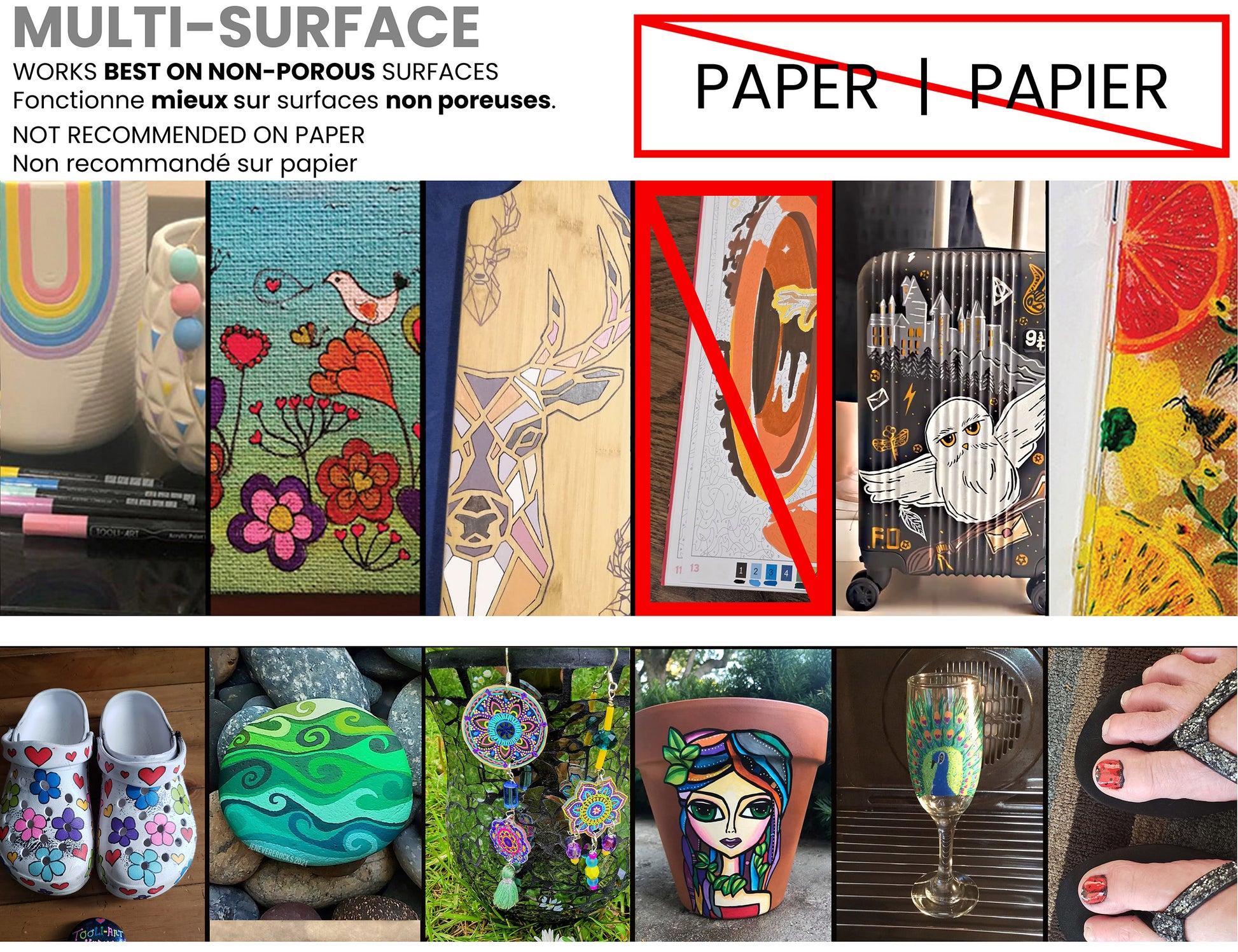 ✅SUPERB QUALITY – The highly pigmented ink gives you a fantastic opaque coverage. The fade-resistant ink dries quickly and works great on dark and light surfaces. The multi-surface paint works on most non-porous surfaces including stone, glass, wood, metal, fabric, porcelain, canvas, plastic, pottery, etc. and is perfect for any DIY project, rock painting, and more!