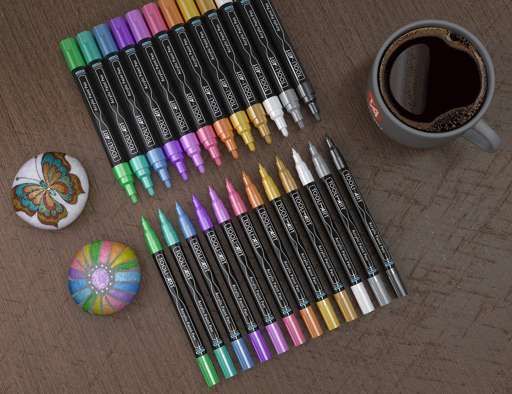 - Tooli-Art paint pens are ideal for use on arts & crafts, rocks, photos, mugs, canvases, pottery, or almost any object you’d like to mark on. Uses can range from something artistic to simply jotting down a note or labeling something. One very popular use is to join in on the “Kindness Rock” movement and paint rocks to spread your own positive message to the world!