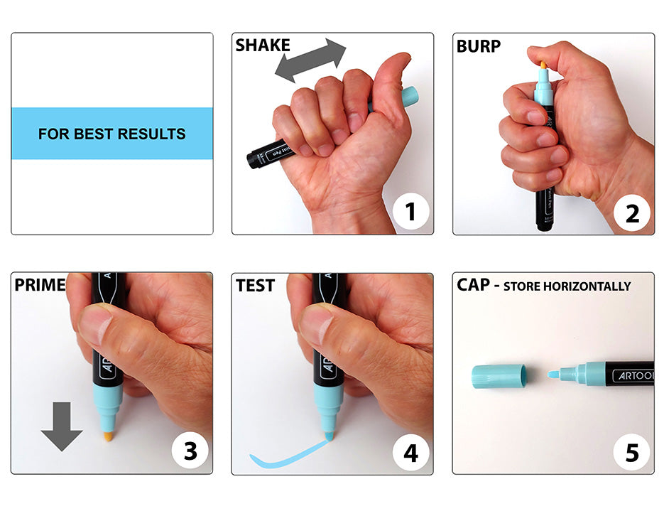 - 5. CAP : Recap after use and store pens on it's side.