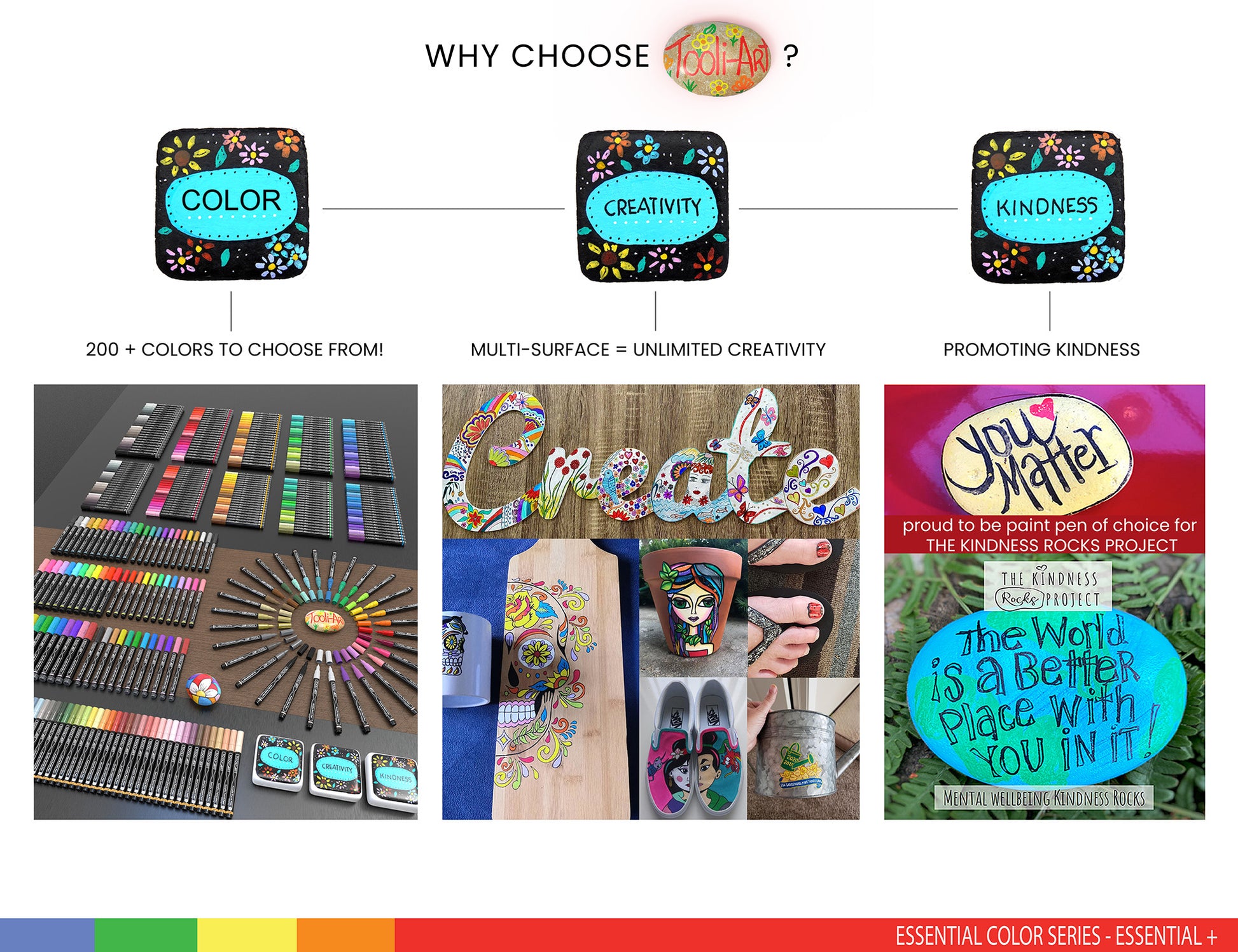 Tooli-Art paint pens are ideal for use on arts & crafts, rocks, photos, mugs, canvases, pottery, or almost any surface.  Uses can range from painting a gift mug, model kit, or a sign on wood or most other surfaces. One very popular use is to join in on the “Kindness Rock” movement and paint rocks to spread your own positive messages to the world! Tooli-Art is the paint pen of choice for The Kindness Rock Project.
