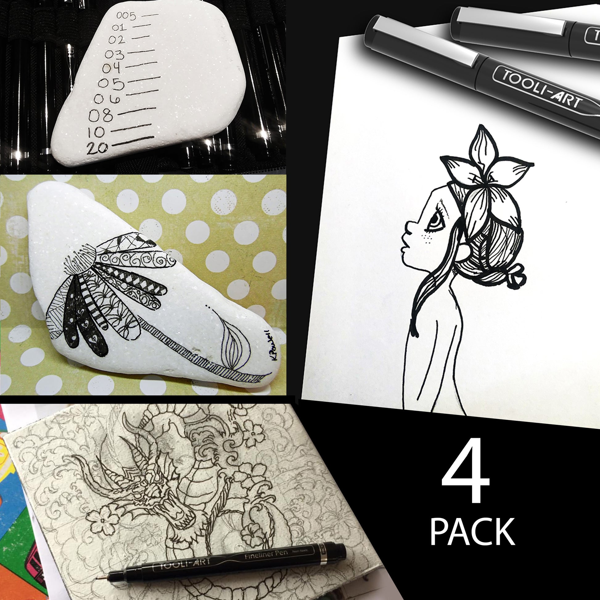 TOOLI-ART Micro-Line Pens 4 PACK Black, Fineliner, Multiliner, Archival Ink, Artist Illustration, Architecture, Technical Drawing