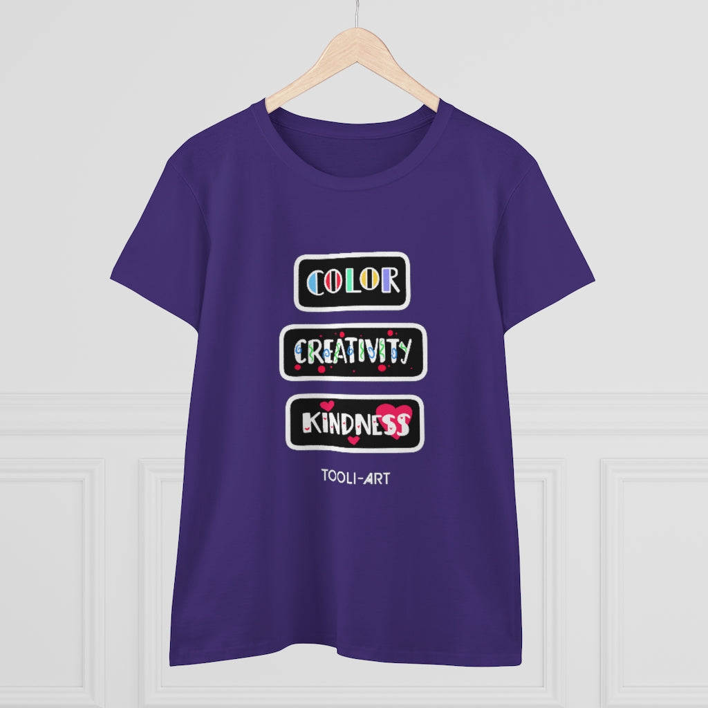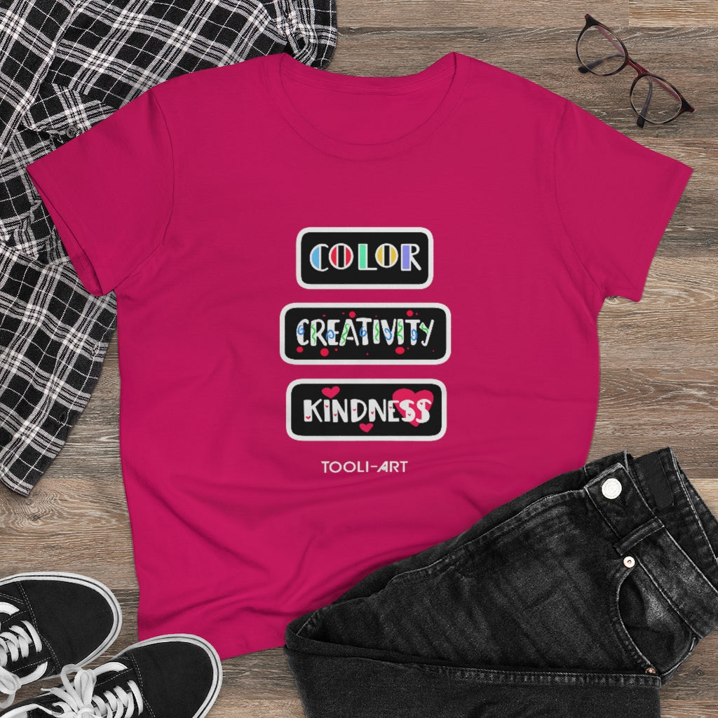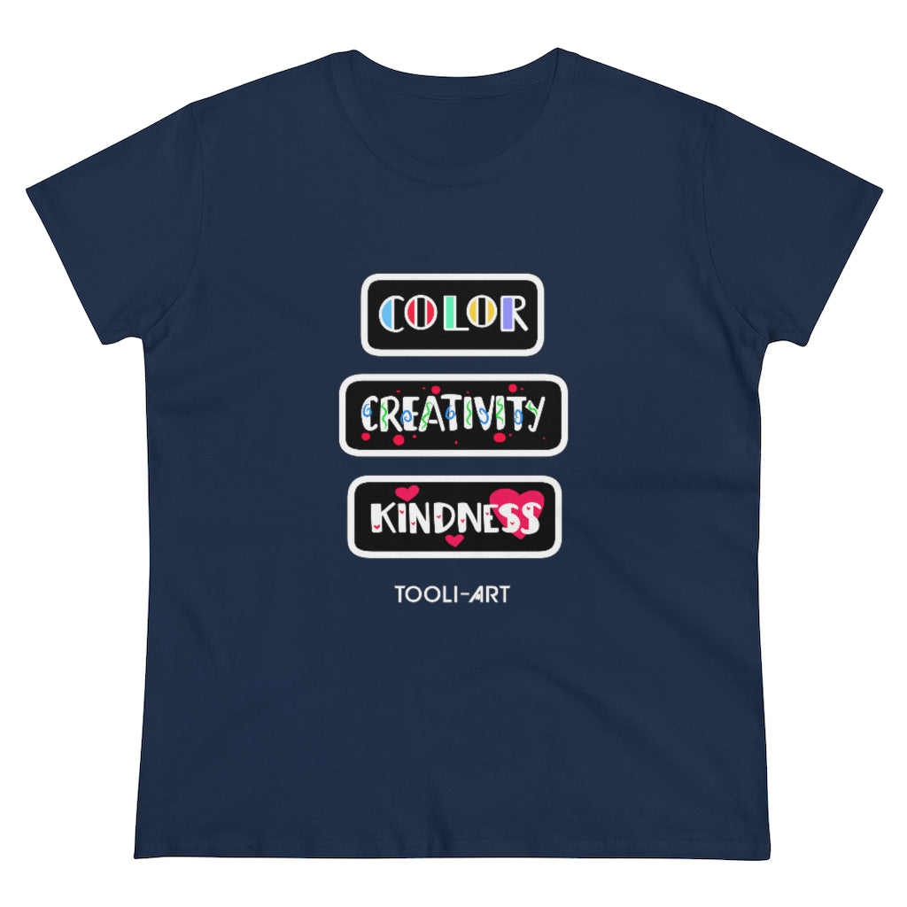 TOOLI-ART Women's Midweight Cotton Tee - COLOR CREATIVITY KINDNESS